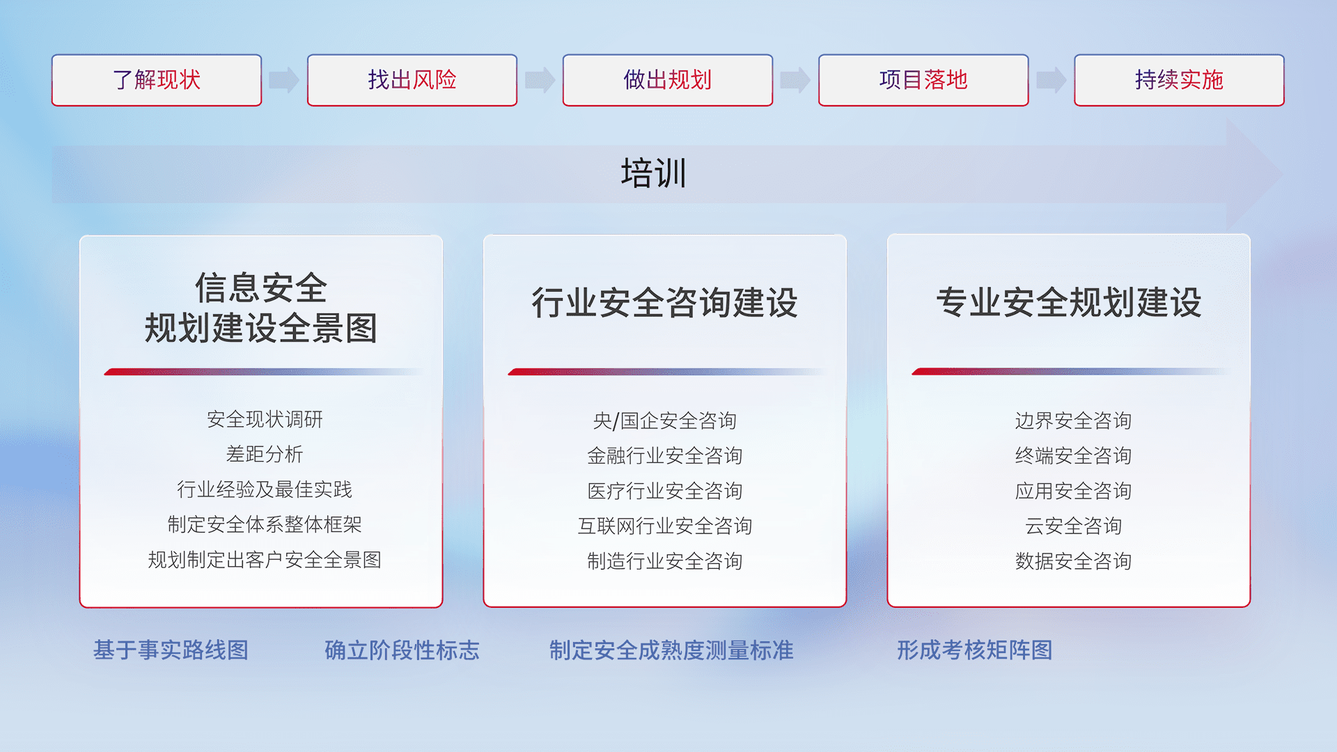 通过专业的法律咨询解读、、、合规架构体现、、、差异化解决方案、、、测试实施支持等服务,,,,为客户量身打造等保合规体系。。。